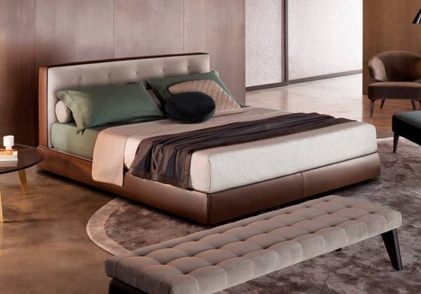 運用布料與皮料兩種材質對比,讓臥室配色,富有設計感。